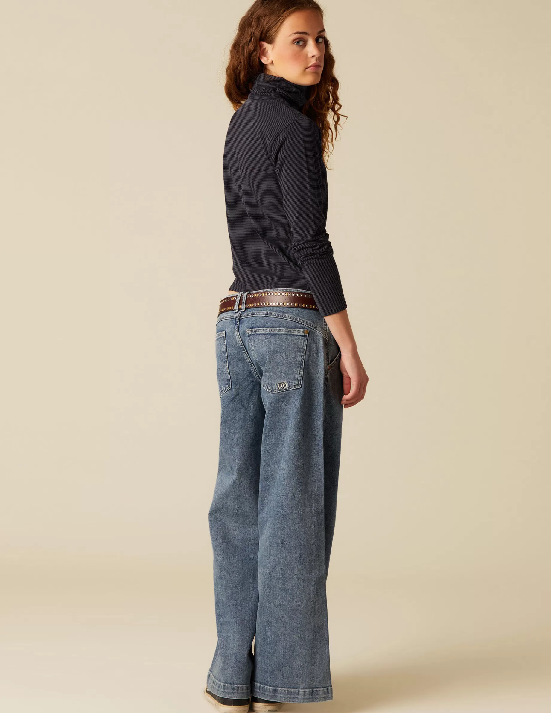 Camiseta benéfica de rayas, de chica. Patrón con cuello vuelto y manga larga.