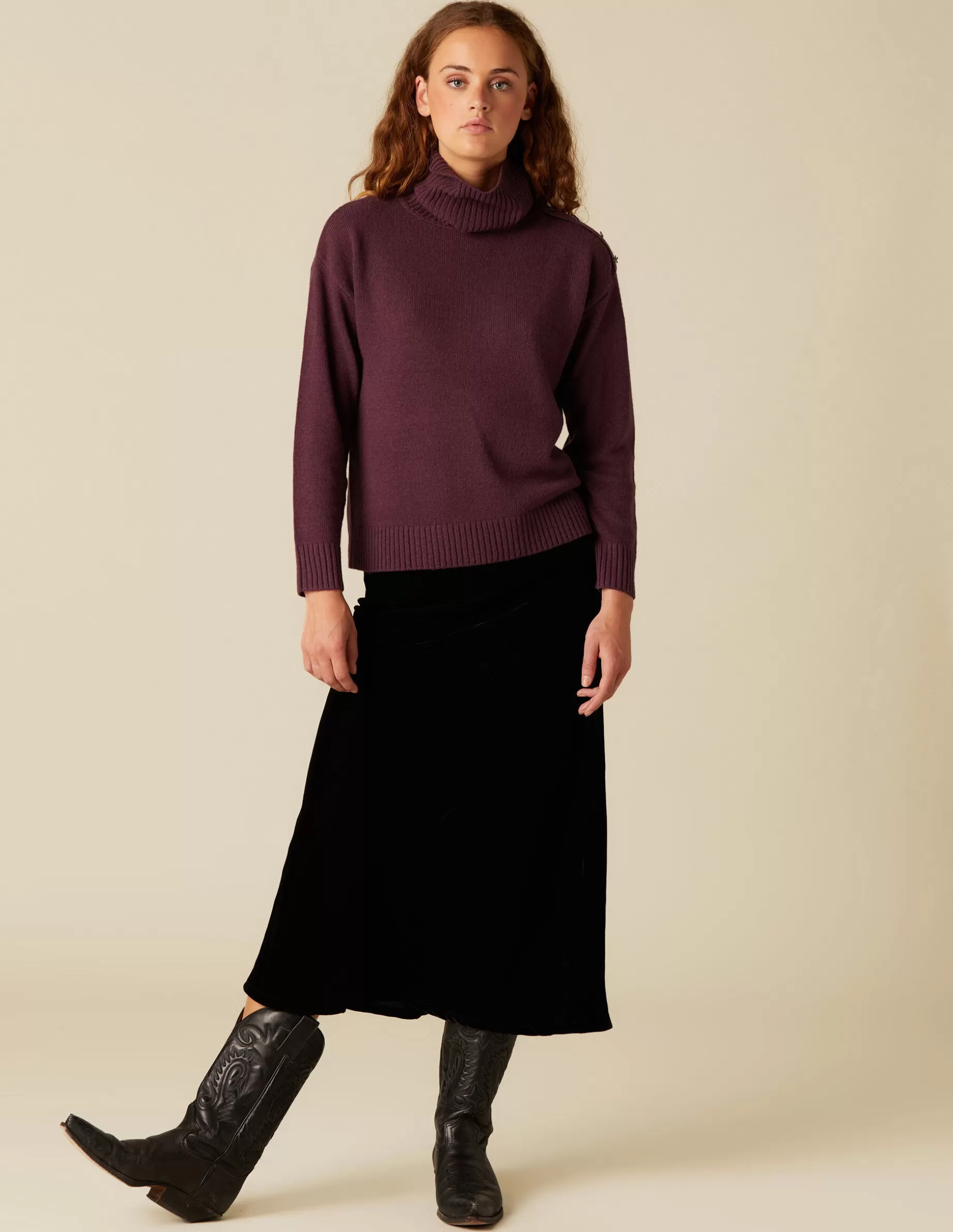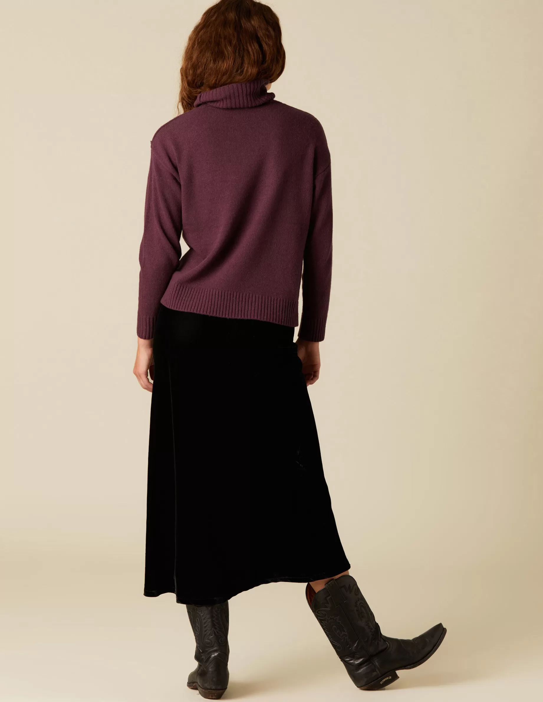 Falda midi de chica, en terciopelo liso. Patrón con goma en la cintura.