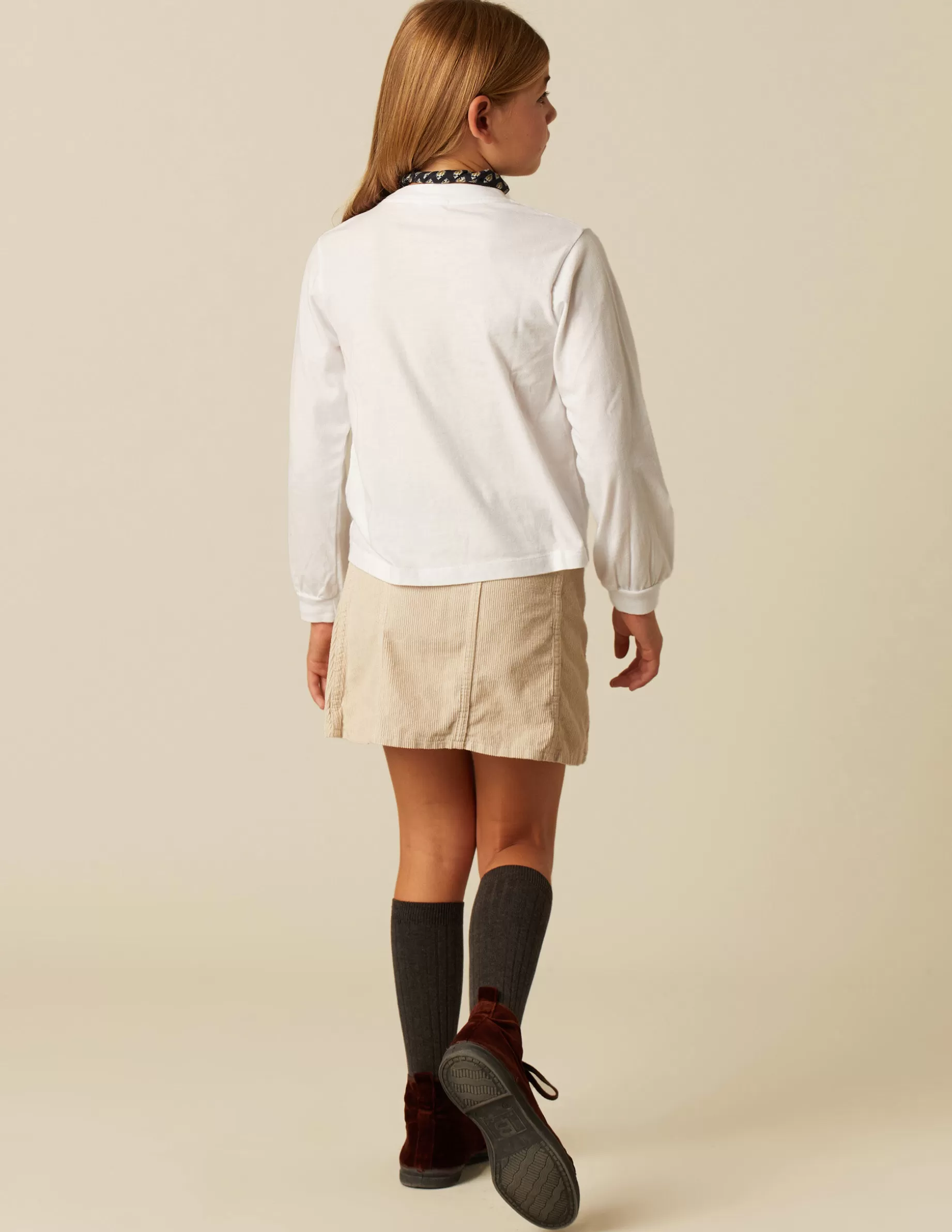 Camiseta básica de chica, patrón con cuello redondo y manga larga. Detalle de logo bordado en el bajo.