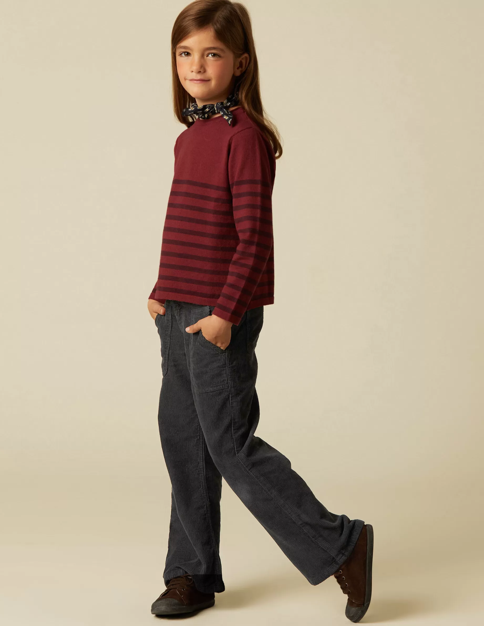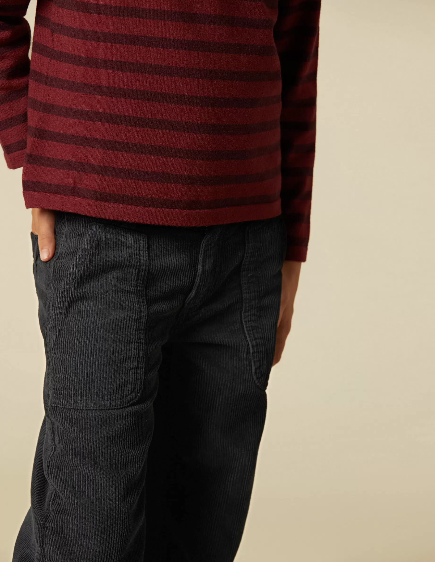 Pantalón wide leg de pana azul con bolsillos. Cierre con botón metálico y cremallera.