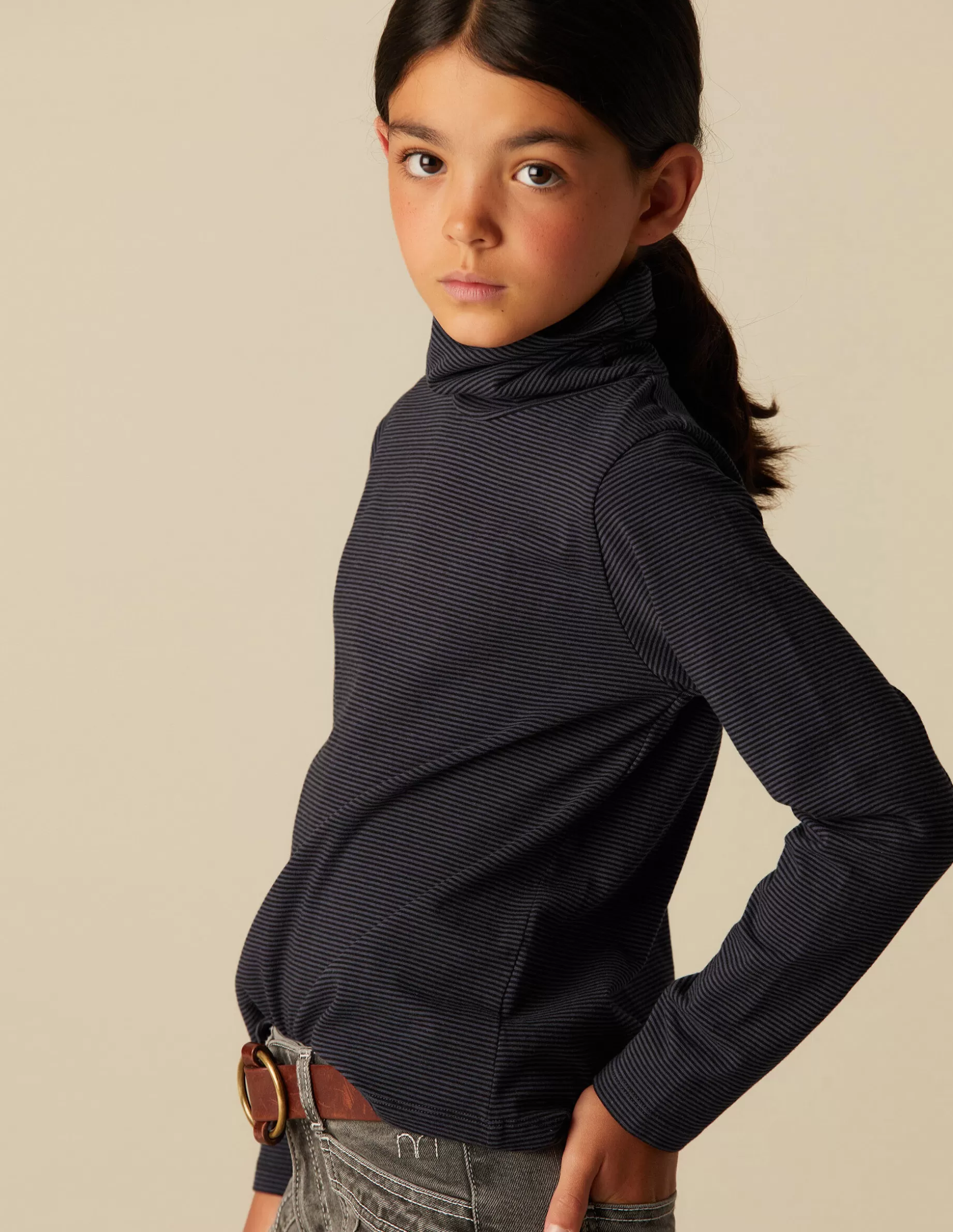 Camiseta benéfica de rayas, de teen. Patrón con cuello vuelto y manga larga.