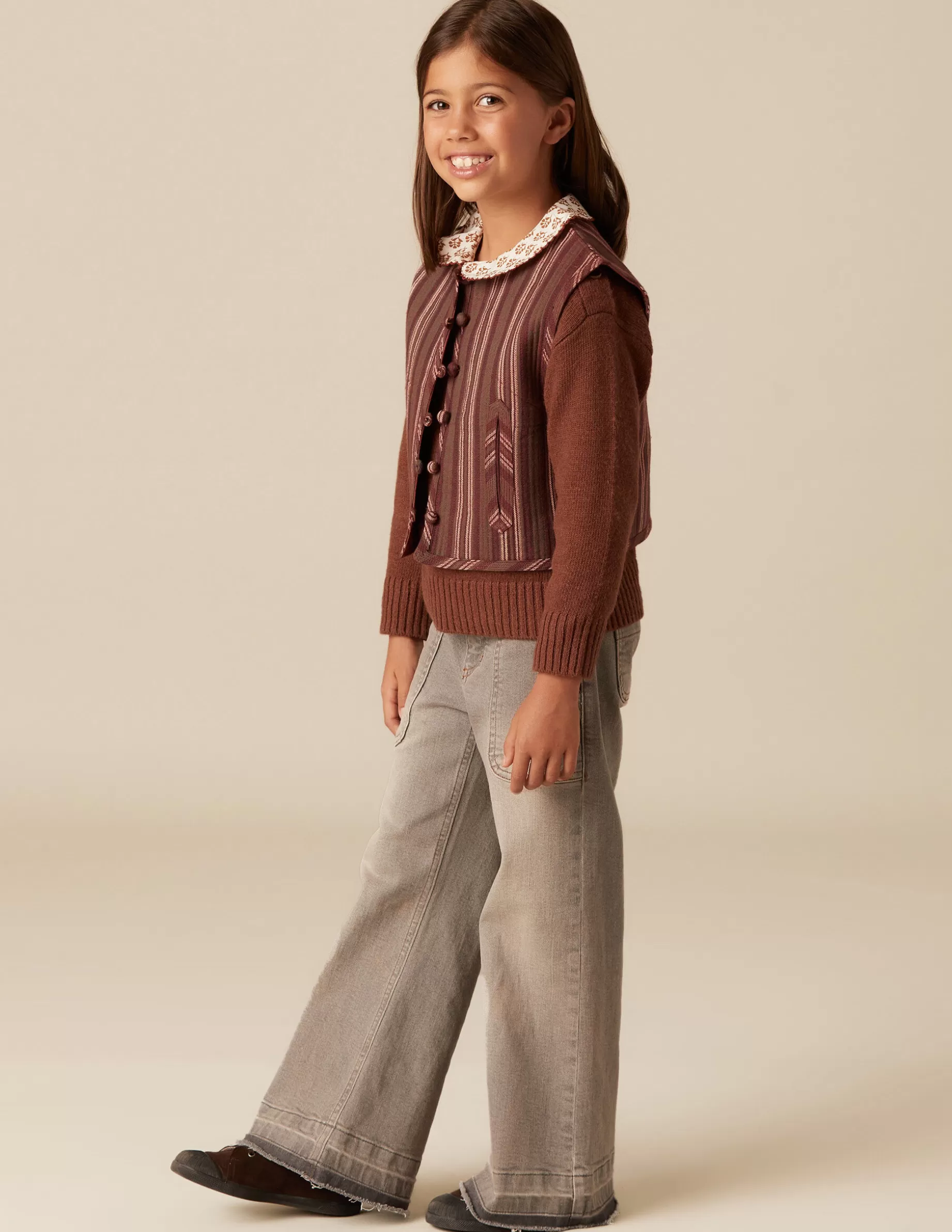 Chaleco de niña, en tejido de algodón de rayas.