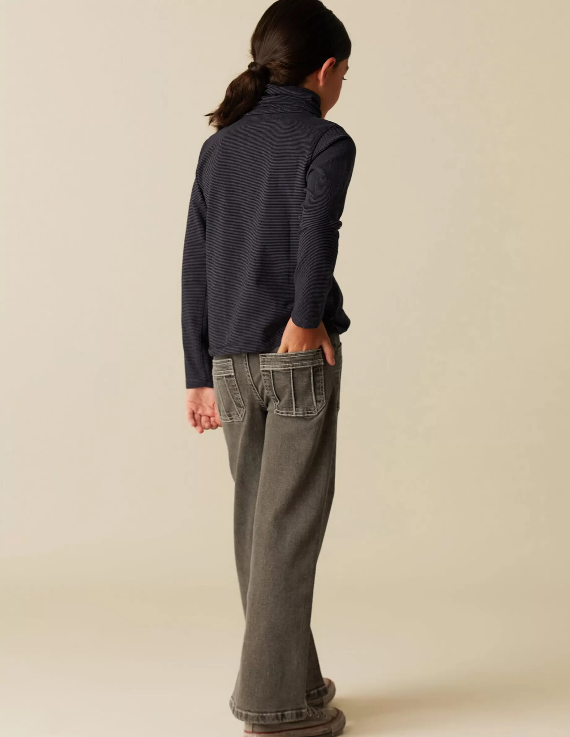Camiseta benéfica de rayas, de niña. Patrón con cuello vuelto y manga larga.