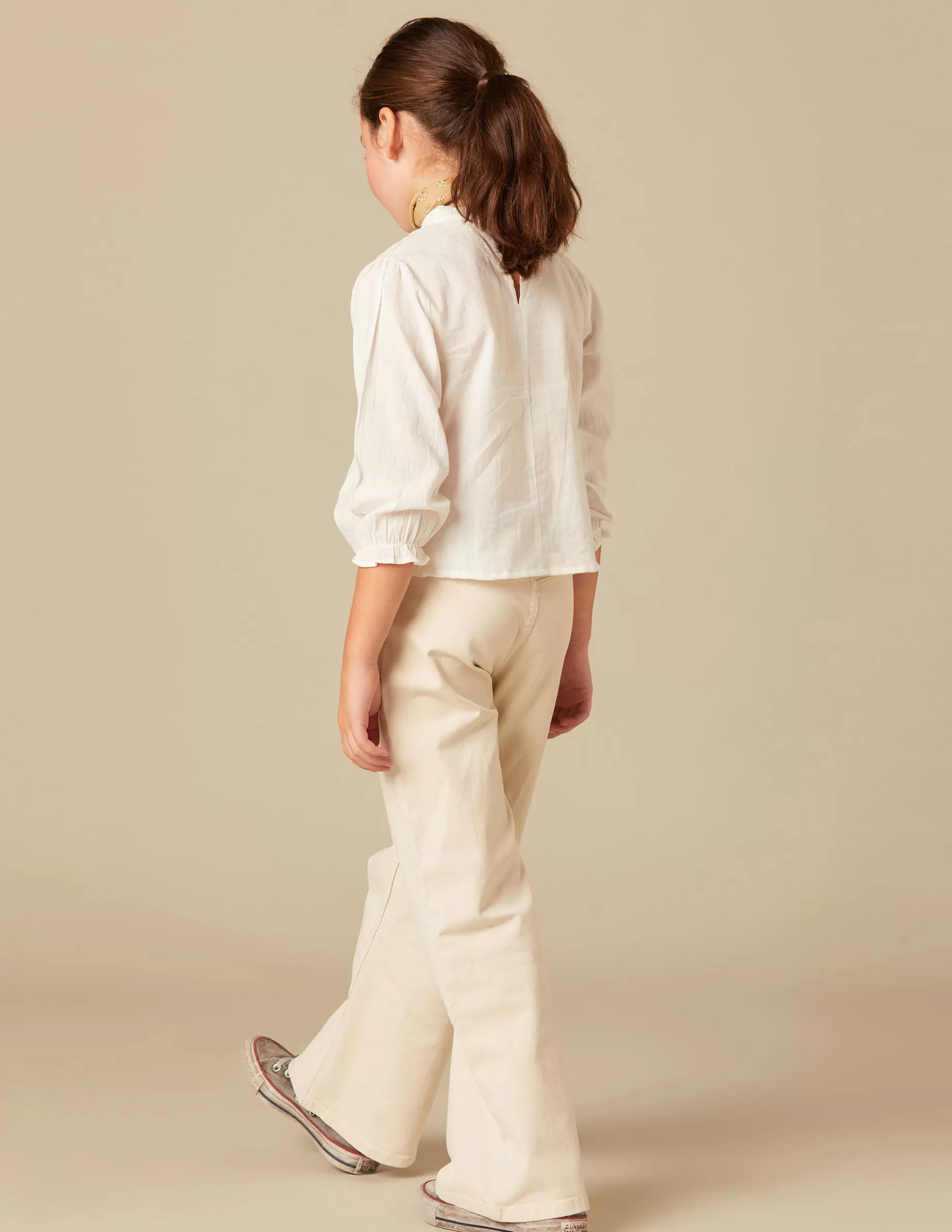 Pantalón ancho de algodón de tiro medio con detalle de bolsillos con tapeta. Cierre con cremallera y botón.