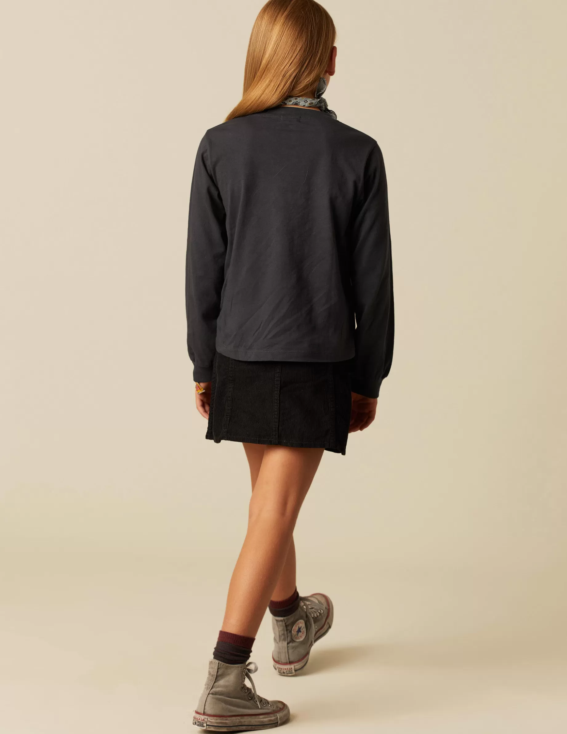 Camiseta básica de chica, patrón con cuello redondo y manga larga. Detalle de logo bordado en el bajo.