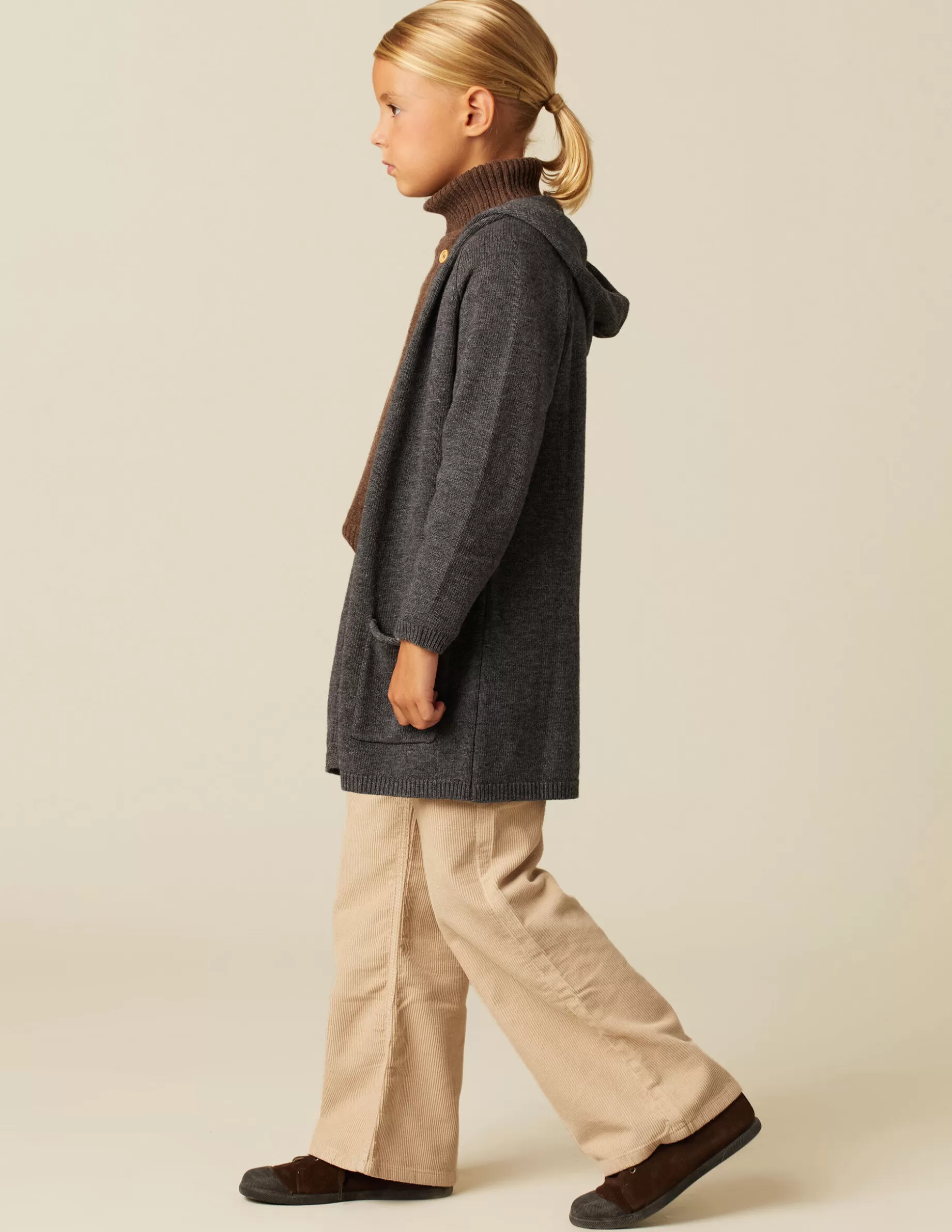 Chaqueta larga de manga larga. Detalle capucha y bolsillos delanteros.