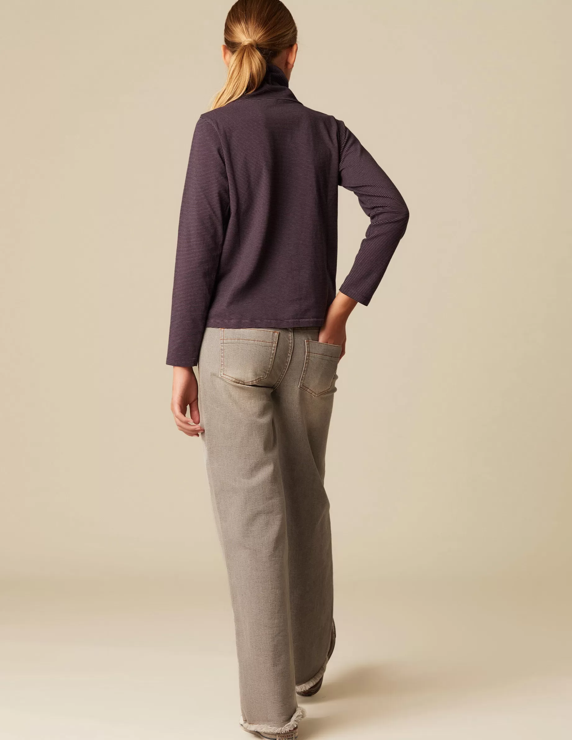Camiseta benéfica de rayas, de teen. Patrón con cuello vuelto y manga larga.