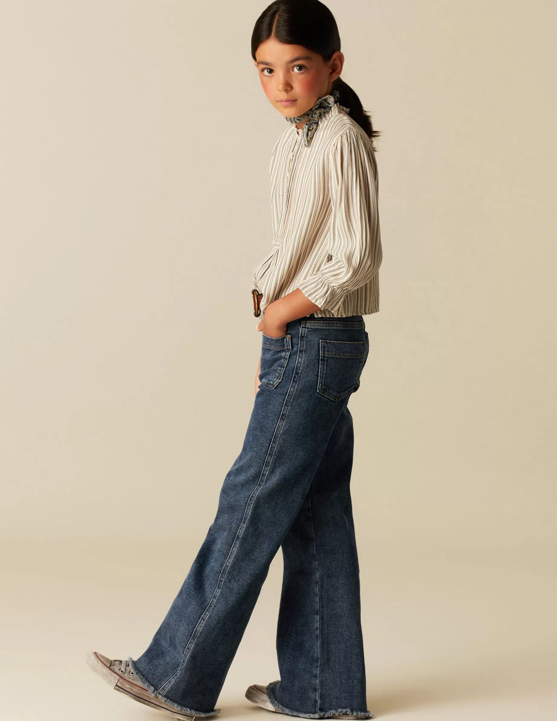 Pantalón ancho de tiro medio con bolsillos plastrón. Cierre frontal con cremallera y botones.
