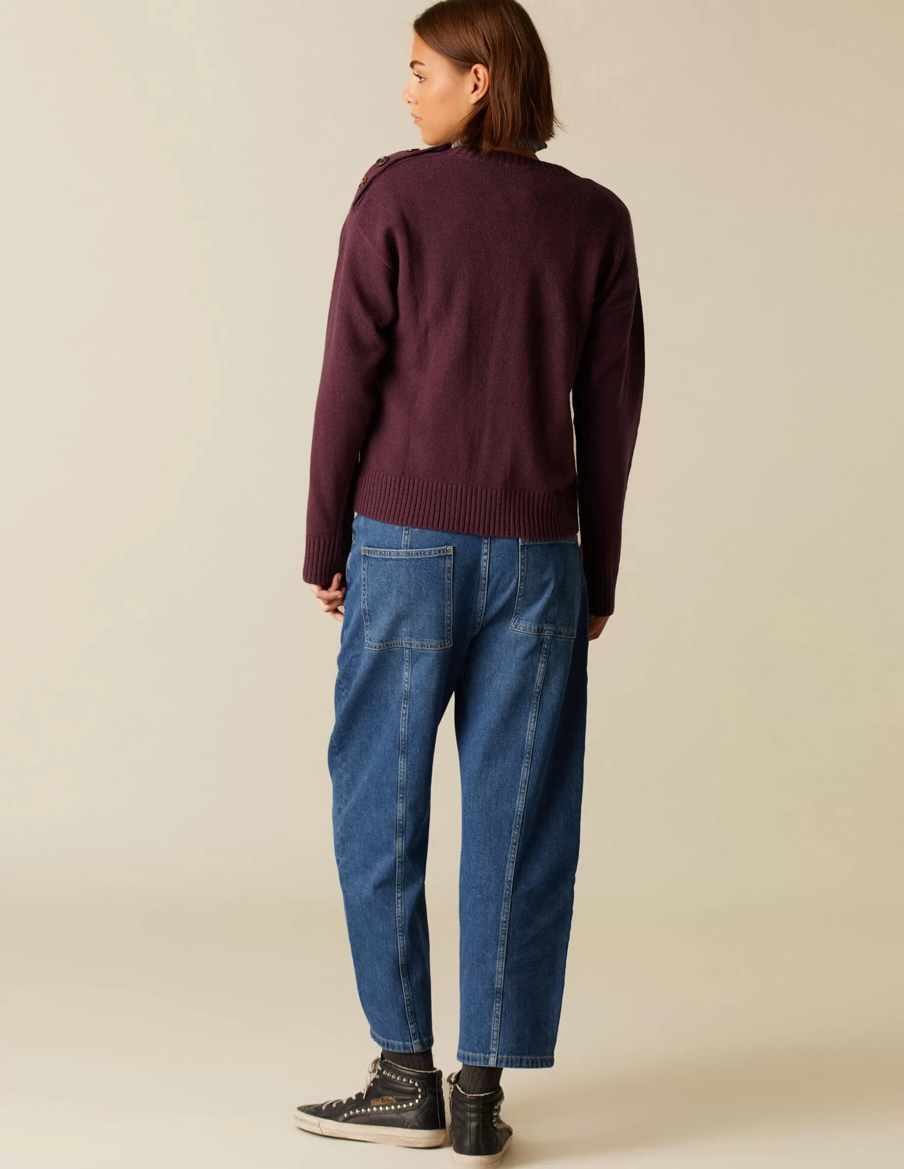 Pantalón de talle bajo y lavado. Detalle de doble pespunte en ambas perneras. Cierre frontal con cremallera y doble botón.