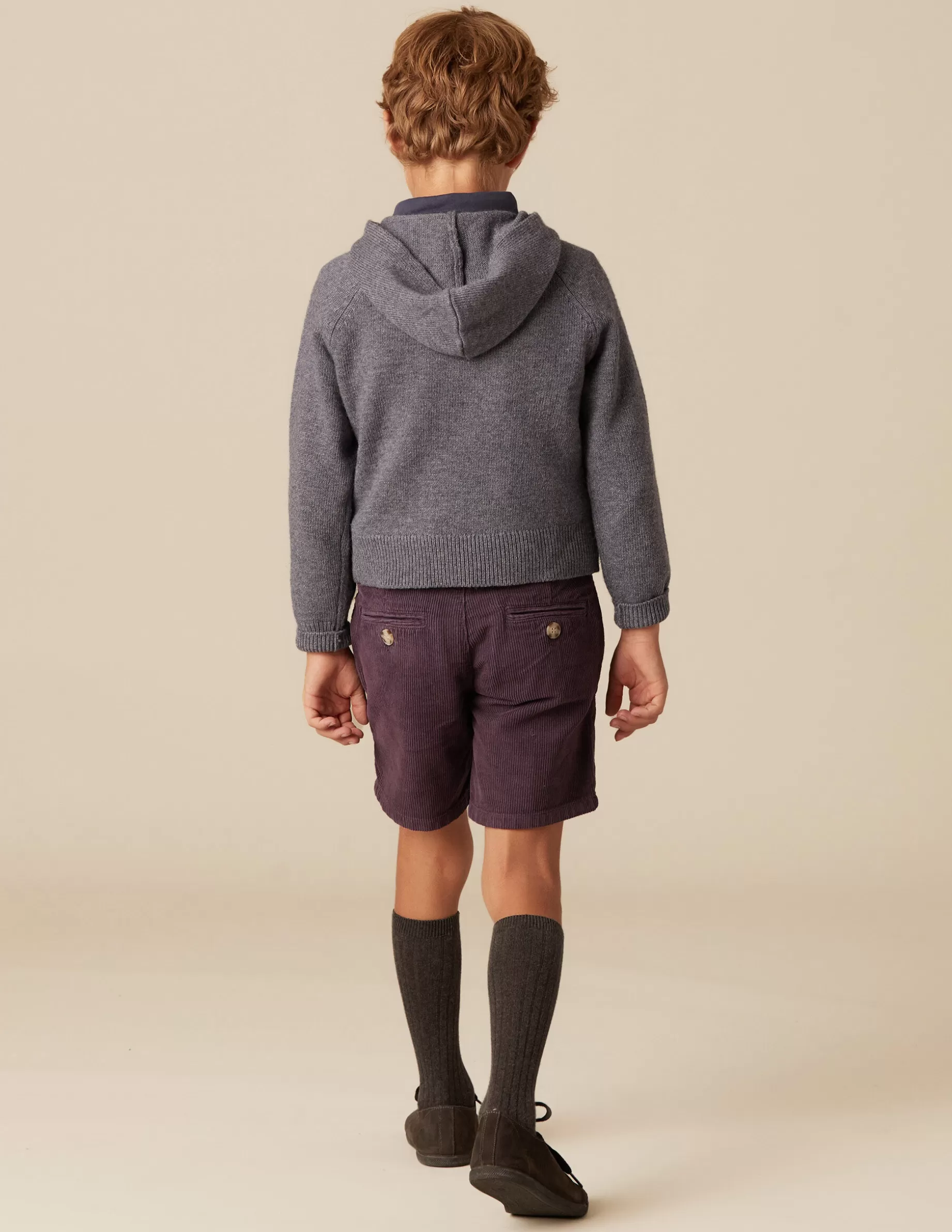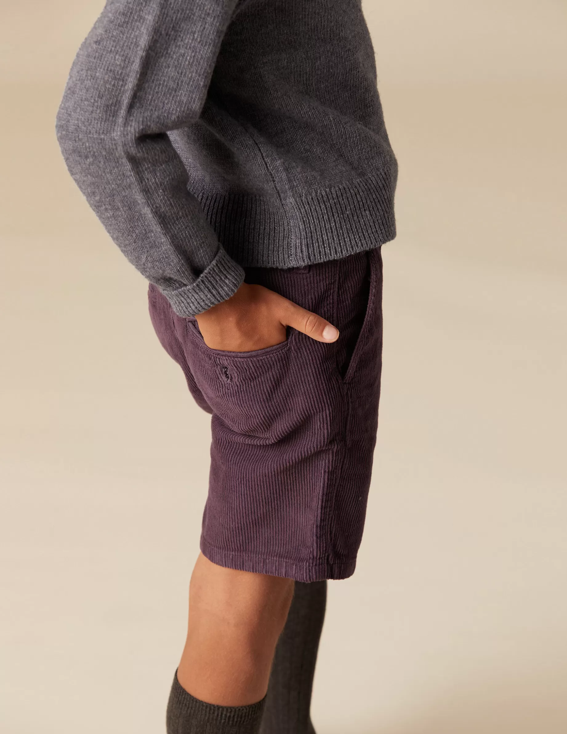 Pantalón corto de pana lavado. Bolsillos frontales. Cierre con cremallera y botón.