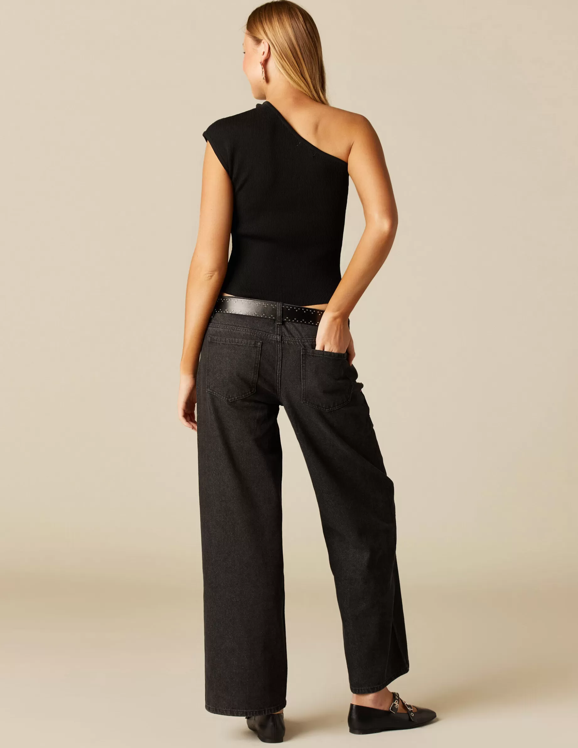 Pantalón de tiro bajo con bolsillos. Detalle de lentejuelas granates y plateadas en delantero. Cierre con cremallera y …