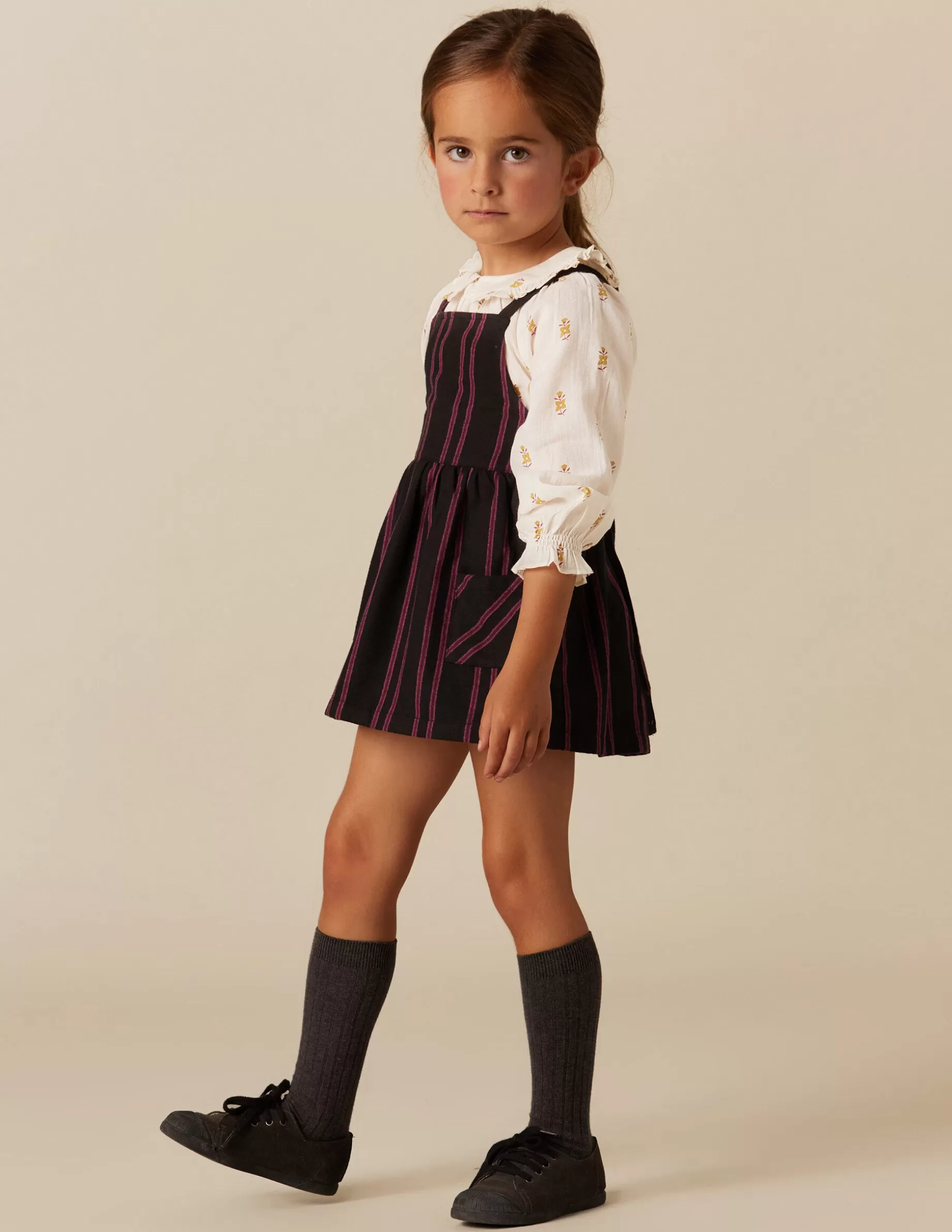 Pichi de niña, en tejido de algodón con raya tejida.