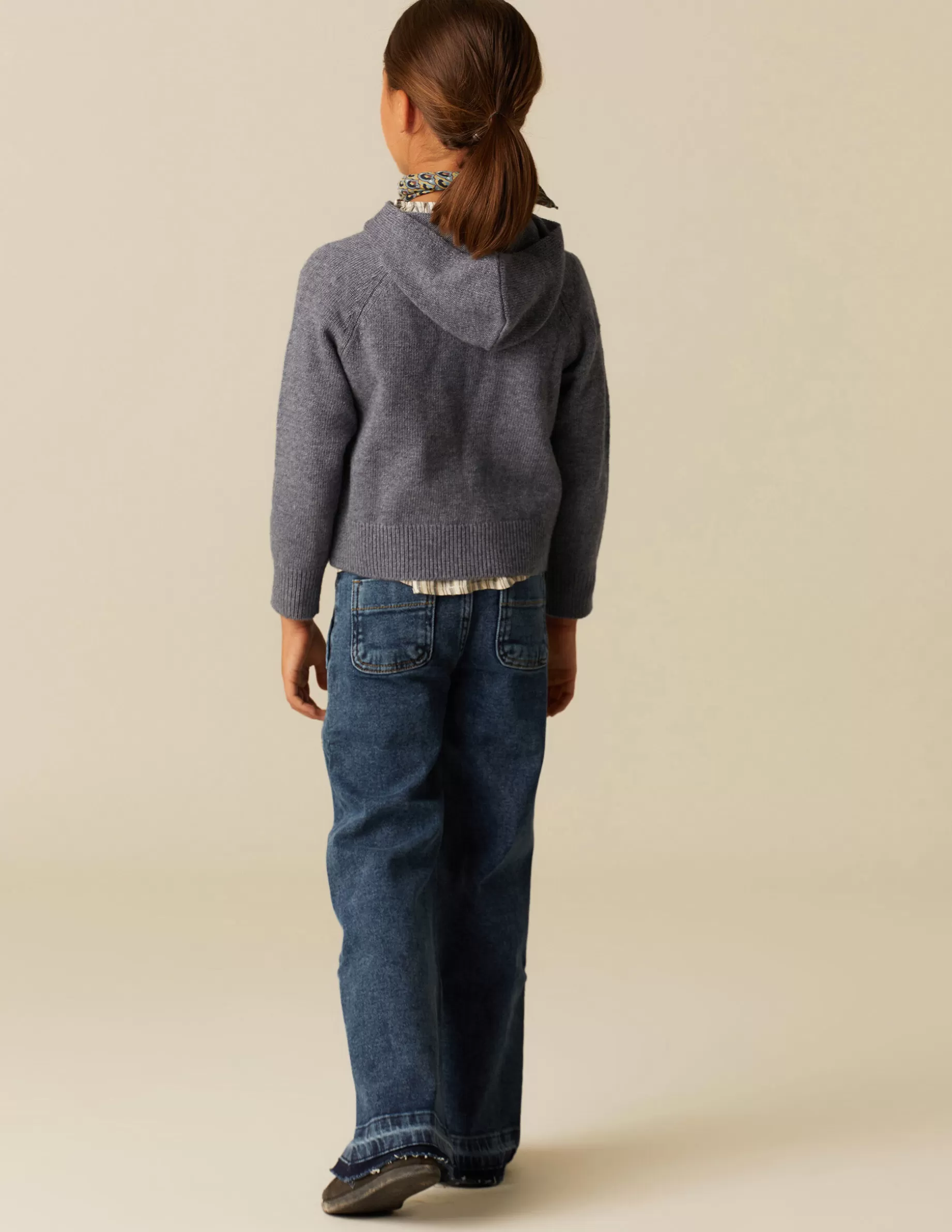 Jersey azul jaspeado con cuello cerrado. Detalle capucha.