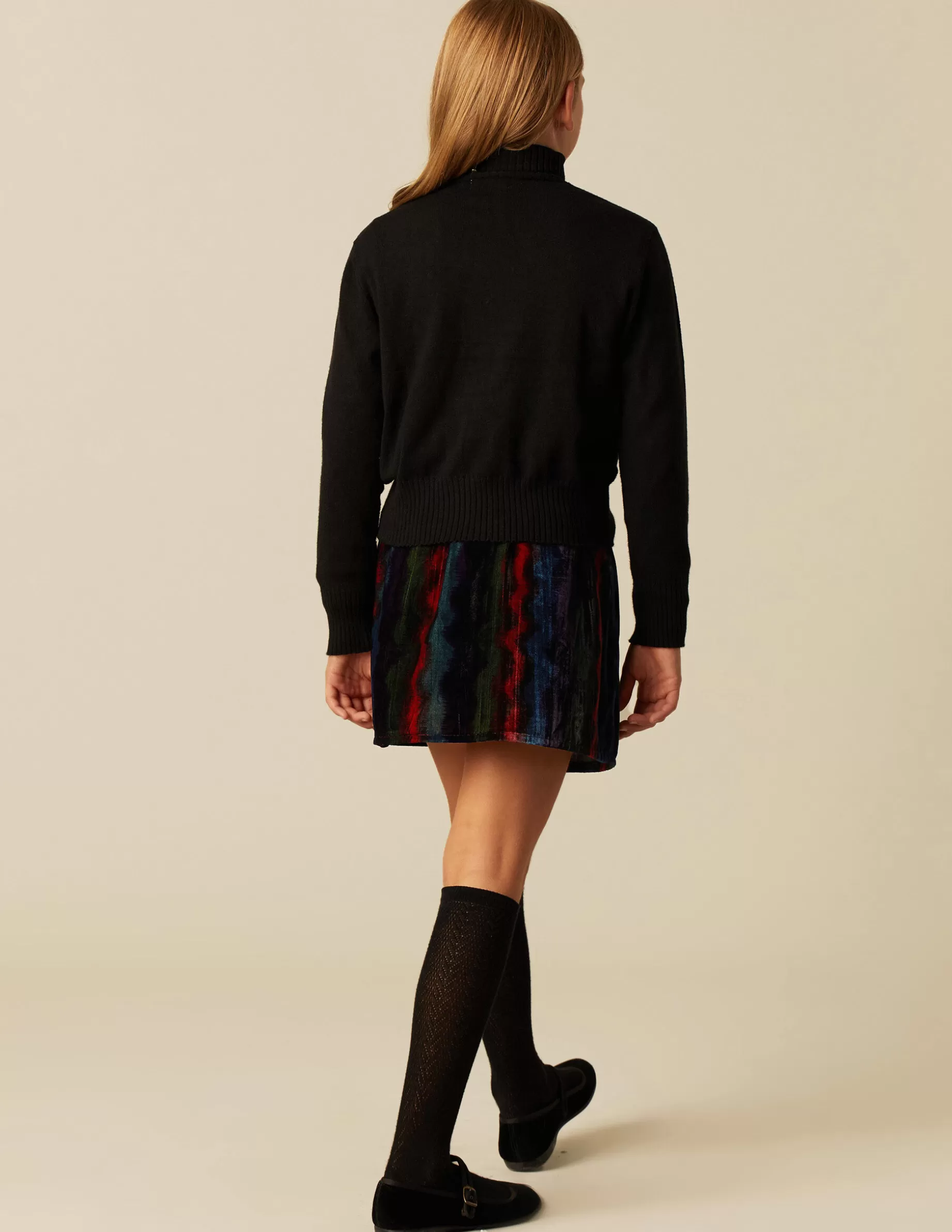 Jersey de punto en color negro. Patrón de cuello vuelto y manga larga.