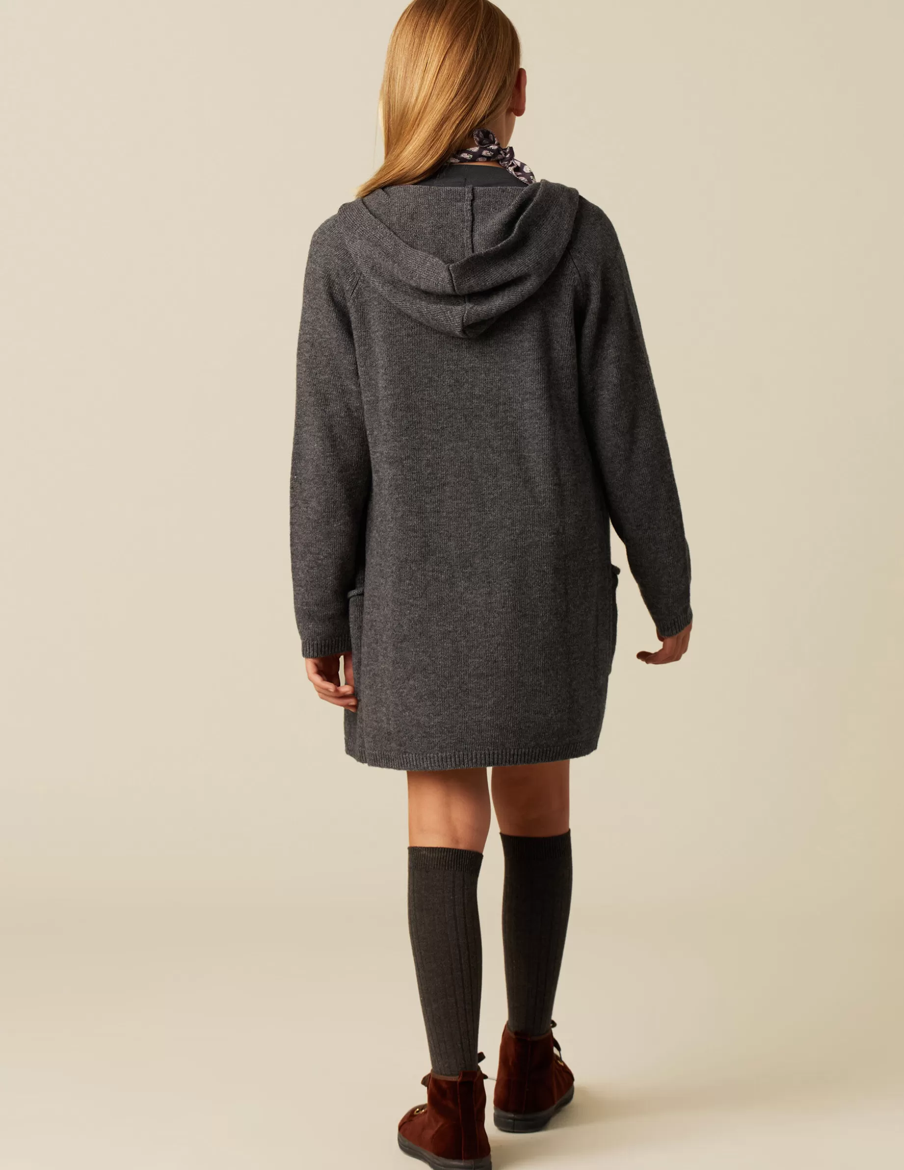 Chaqueta larga de manga larga. Detalle capucha y bolsillos delanteros.