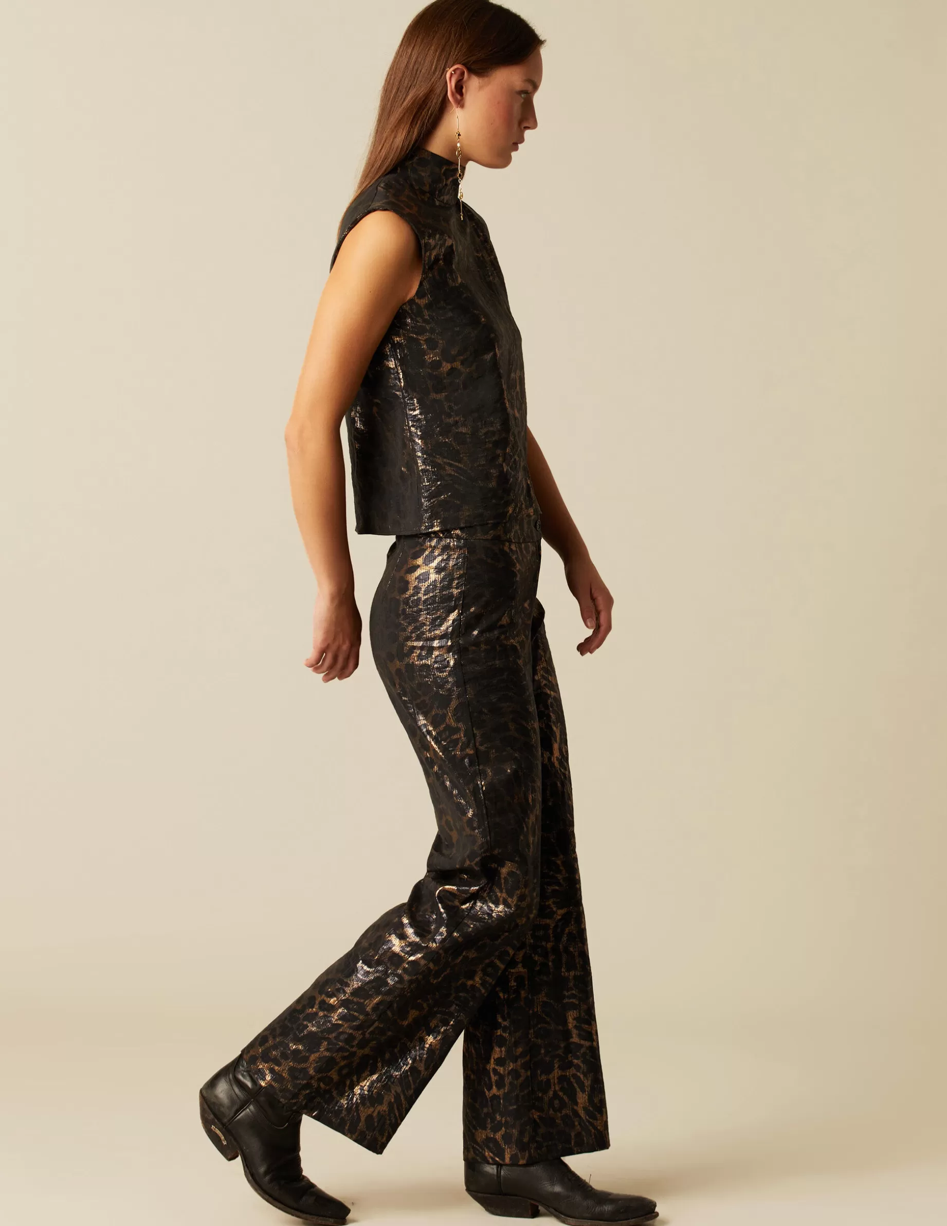 Top de chica estampado. Patrón sin mangas y cuello alto. Cierre con cremallera en la espalda. El tejido presenta brillos.